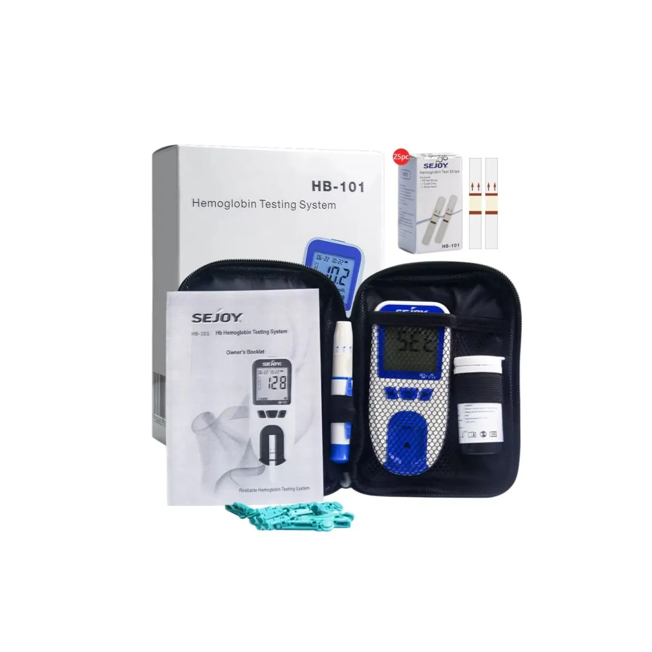 Hemoglobin Test Meter consists of a portable meter that analyzes the intensity and color of light reflected from the reagent area of a test strip, ensuring quick and accurate results. System provides results in less than 15 seconds and requires only a single drop of whole blood. The meter can store up to 1000 results. It can be operated by 3 AAA (1.5V) batteries. The system is intended for use outside the body (in vitro diagnostic use) by physical examination and by health care professional in a clinical situation such as anemia.